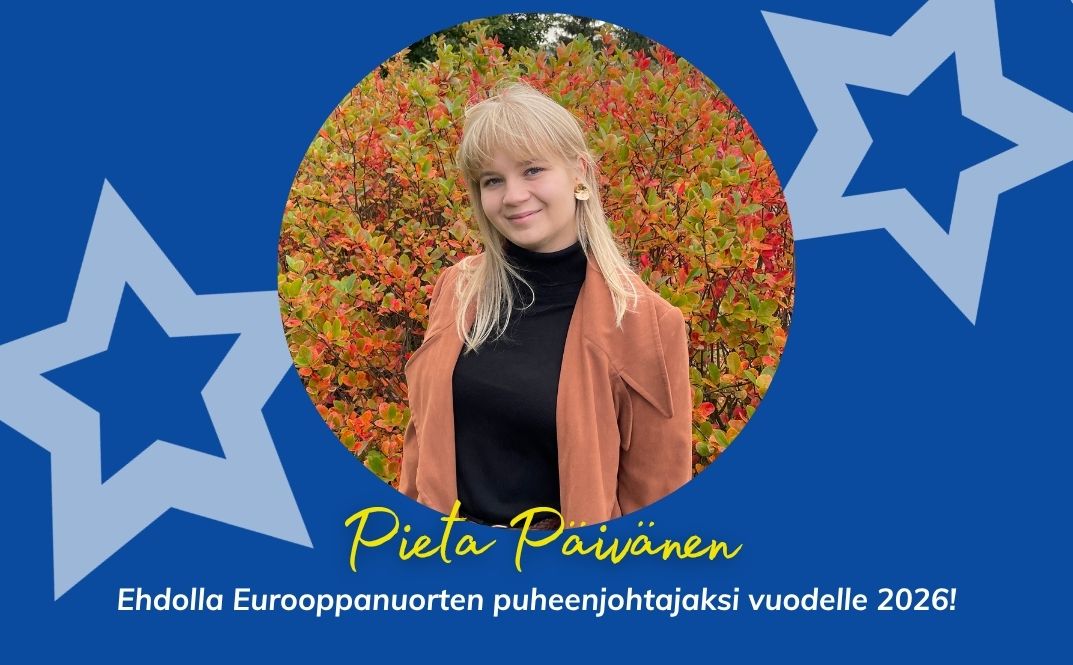 Ehdolla puheenjohtajaksi: Pieta Päivänen 10.11.2025 Arvoisa Eurooppanuorten jäsenistö, Haen luottamustanne armaan järjestömme puheenjohtajan tehtävään vuodelle 2026. Ensi vuonna haluan olla rakentamassa Eurooppanuorista entistä äänekkäämpää, tasapainoisempaa ja saavutettavampaa liikettä, pitäen keskiössä…